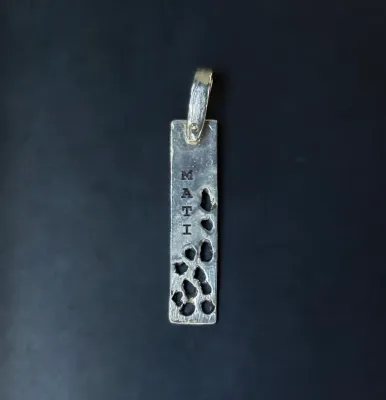 Diseño Colgante péndulo fabricado en plata 950 con acabado envejecido y piedras naturales como cuarzo, ojo de tigre y labradorita, hecho a mano y en Chile. Medida: 5x1x1cm Poderes curativos Cuarzo transparente: Claridad mental y equilibrio energético. Ojo de tigre: Fuerza interior y protección frente a energías negativas. Labradorita: Intuición aguda y escudo contra el desgaste emocional. Lapislázuli : Sabiduría profunda y comunicación auténtica. Ágata verde : Armonía emocional y renovación de energías. Ónix verde : Valentía y determinación para enfrentar desafíos. Amatista : Calma espiritual y protección frente al estrés. Amazonita : Confianza personal y equilibrio en la toma de decisiones. Experiencia Malevo Cuando eliges Malevo Joyas, te unes a una comunidad exclusiva donde la calidad y el diseño se combinan con un servicio premium. Empaque completo: Elegante bolsa de cuero PU Garantía Empaque de primera calidad. Si quieres ver más detalles de nuestro EMPAQUE entra en el siguiente link . Medida Verifica tu medida en el siguiente link. Grabado láser Puedes agregar el servicio de grabado láser en los productos que tengan esta opción. Una vez realizada tu compra te contactaremos vía WhatsApp para coordinar letra, tamaño, ubicación, etc. Tiempo: El grabado láser demora 1 día más. Texto a grabar. Te contactaremos para definir detalles. Información sobre el pago y envío Ofrecemos diferentes opciones de pago. Elige el que prefieras al finalizar la compra. Ver más información. Revisa los tiempos de envío en el siguiente link